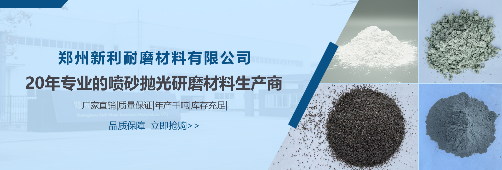 鄭州新利耐磨材料有限公司成立于20多年前,是一家專(zhuān)注于生產(chǎn)噴砂拋光研磨材料和精細(xì)微粉的企業(yè),目前在職員工共計(jì)58人,研發(fā)部門(mén)有5人,擁有15年以上磨料磨具行業(yè)經(jīng)驗(yàn)。公司擁有2個(gè)生產(chǎn)廠(chǎng)區(qū),年產(chǎn)3000噸微粉和10000噸粒度砂。我們是行業(yè)內(nèi)率先將微粉原晶粒度做到標(biāo)準(zhǔn)0.3um,可達(dá)到納米級(jí)的超精研磨和拋光的領(lǐng)先者。生產(chǎn)上有5臺(tái)固定冶煉爐,3條粒度砂生產(chǎn)線(xiàn)和3條超細(xì)微粉生產(chǎn)線(xiàn),生產(chǎn)線(xiàn)達(dá)到半自動(dòng)化。實(shí)驗(yàn)室有2臺(tái)歐美克電阻和激光粒度檢測(cè)儀等檢測(cè)儀器。公司專(zhuān)業(yè)生產(chǎn)白剛玉砂,白剛玉微粉,氧化鋁粉,綠碳化硅微粉和氧化鋯砂,廣泛應(yīng)用于半導(dǎo)體、五金、機(jī)械、電子、玻璃、涂料等行業(yè)的噴砂和研磨,鏡面拋光粉可以替代部...